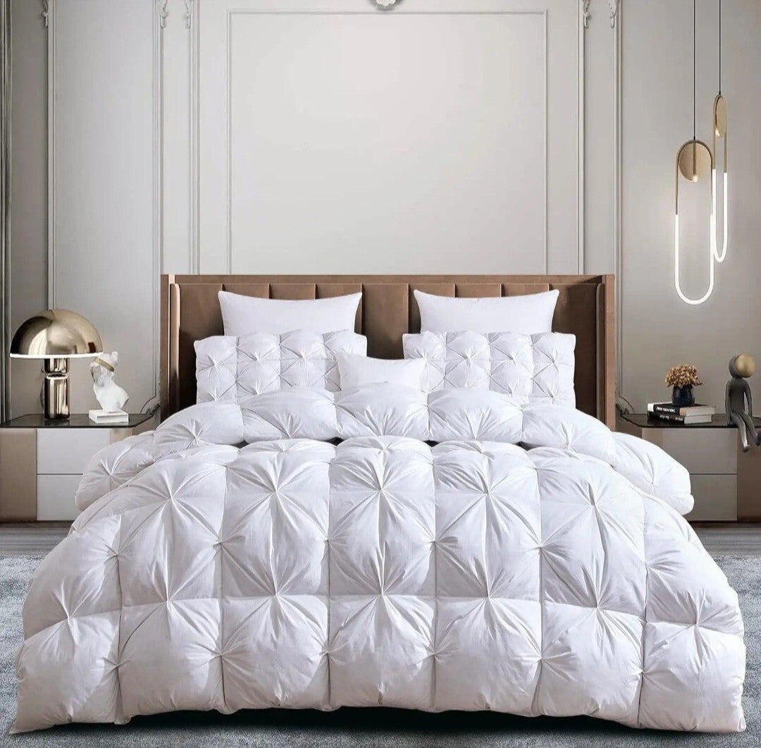 Rembourrée de duvet de canard de qualité supérieure avec une densité de 400 GSM, cette couette procure une chaleur enveloppante tout en restant légère et respirante — idéale pour des nuits confortables en toute saison.
